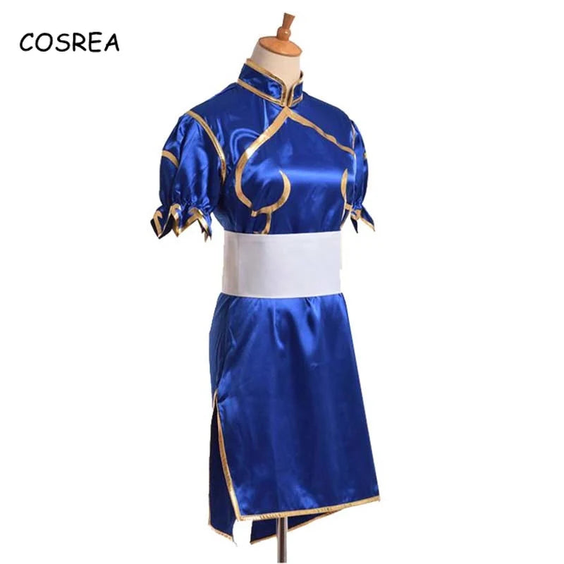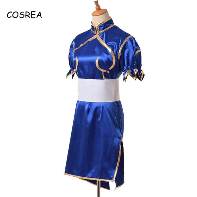 Juegos Chun Li disfraces Cosplay fiesta de Halloween Sutorito Faita vestido Cheongsam azul cinturón tocado con ropa para mujeres y niñas
