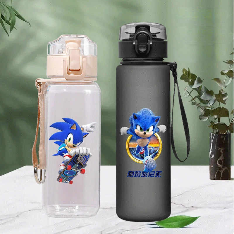 530/560ML Anime Cartoon Sonic The Hedgehog Water Bottle with Time Marker Portable Reusable Plastic Cups Summer Water Cup