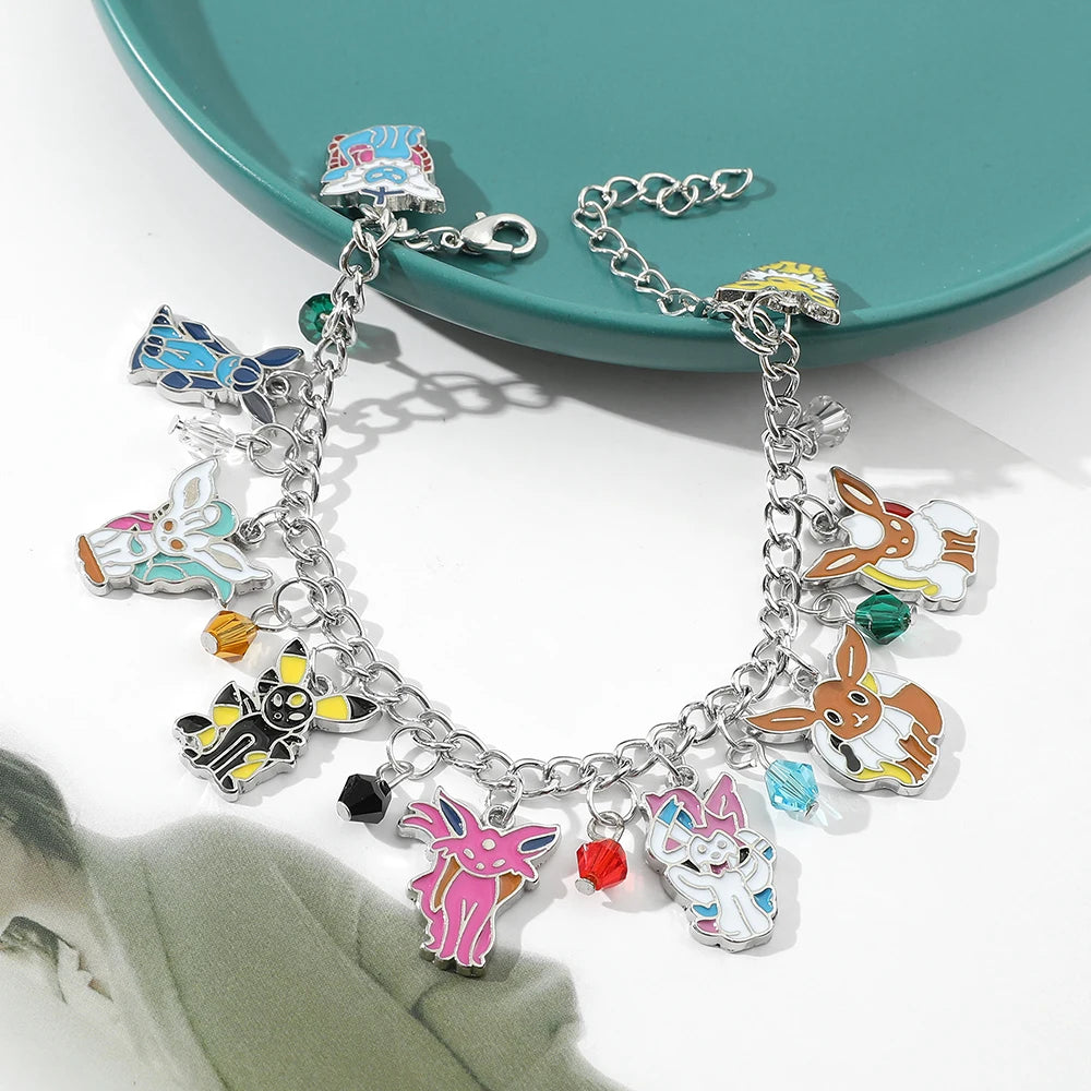 Pokemon Anime Bracelet Cute Cartoon Eevee Pendant Bracelets Metal Enamel Charm Bangle Women Fashion Jewelry Hand Chain Gifts