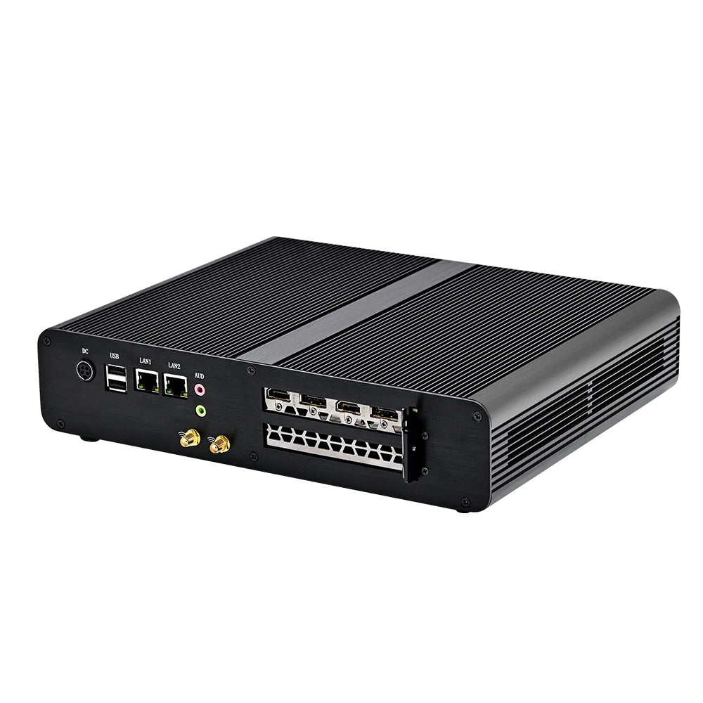 Rear I/O:, 2 x HDMI2.0(4K@60Hz), 2 x DP1.4(8K@60Hz), 2 x USB 2.0, 2 x RJ45 LAN, 1 x MIC, 1 x SPK, 1 x DC-IN